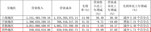 在銷售區(qū)域上,杉杉股份也并未體現(xiàn)其產(chǎn)品的國際競爭力。公司2018年銷售收入88.53億元,其中海外市場僅有8.41億元,占比9.5%,國內(nèi)銷售及其他業(yè)務(wù)占總收入的90.5%。作為“全球規(guī)模最大的鋰離子電池材料綜合供應(yīng)商”,其產(chǎn)品競爭力并未獲得國際認(rèn)可,含金量有所欠缺。