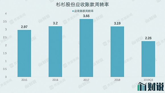 與存貨周轉(zhuǎn)率表現(xiàn)相似的是應(yīng)收賬款周轉(zhuǎn)率。截至2019Q3,其應(yīng)收賬款周轉(zhuǎn)率僅為2.26,近年來呈現(xiàn)下降趨勢(shì),同樣創(chuàng)了近3年新低。應(yīng)收賬款周轉(zhuǎn)率的不斷下滑,影響企業(yè)資金正常周轉(zhuǎn),增加了壞賬風(fēng)險(xiǎn),表明杉杉股份對(duì)下游客戶的話語權(quán)及產(chǎn)品競爭力逐漸降低。