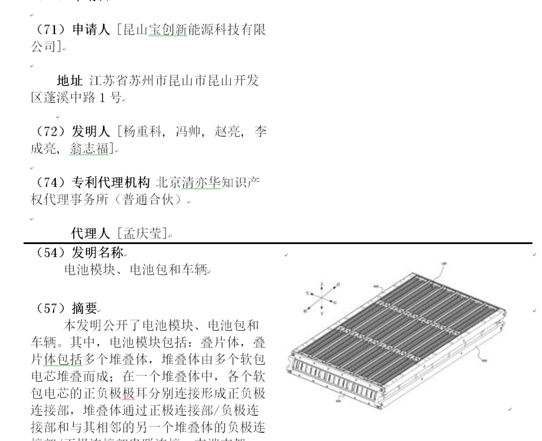 最近,我們從寶能旗下的電池公司寶創(chuàng)新能源新推出的幾篇專(zhuān)利中找到了答案,整體方案看起來(lái)像軟包的CTP。