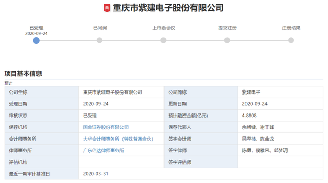 近日,深交所正式受理重慶市紫建電子股份有限公司(簡稱“紫建電子”)的創(chuàng)業(yè)板IPO申請。
