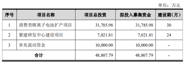 本次募集資金投資的“消費類鋰離子電池擴產(chǎn)項目”是對紫建電子硬殼扣式電池、軟包扣式電池、方形電池等產(chǎn)品的擴產(chǎn),計劃投資31,785.98萬元進行“消費類鋰離子電池擴產(chǎn)項目”項目建設(shè)。