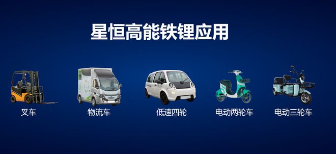 星恒新一代高能鐵鋰產(chǎn)品瞄準(zhǔn)叉車(chē)、物流車(chē)、低速四輪、電動(dòng)兩輪和電動(dòng)三輪車(chē)等特殊化場(chǎng)景與品類(lèi)應(yīng)用。