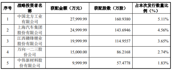 此外,值得關(guān)注的是,此次共有5名與騰遠(yuǎn)鈷業(yè)經(jīng)營業(yè)務(wù)具有戰(zhàn)略合作關(guān)系或長期合作愿景的大型企業(yè)參與戰(zhàn)略配售,分別為中國北方工業(yè)有限公司、上海汽車集團(tuán)股份有限公司、江西贛鋒鋰業(yè)股份有限公司、萬向一二三股份公司和中偉新材料股份有限公司。