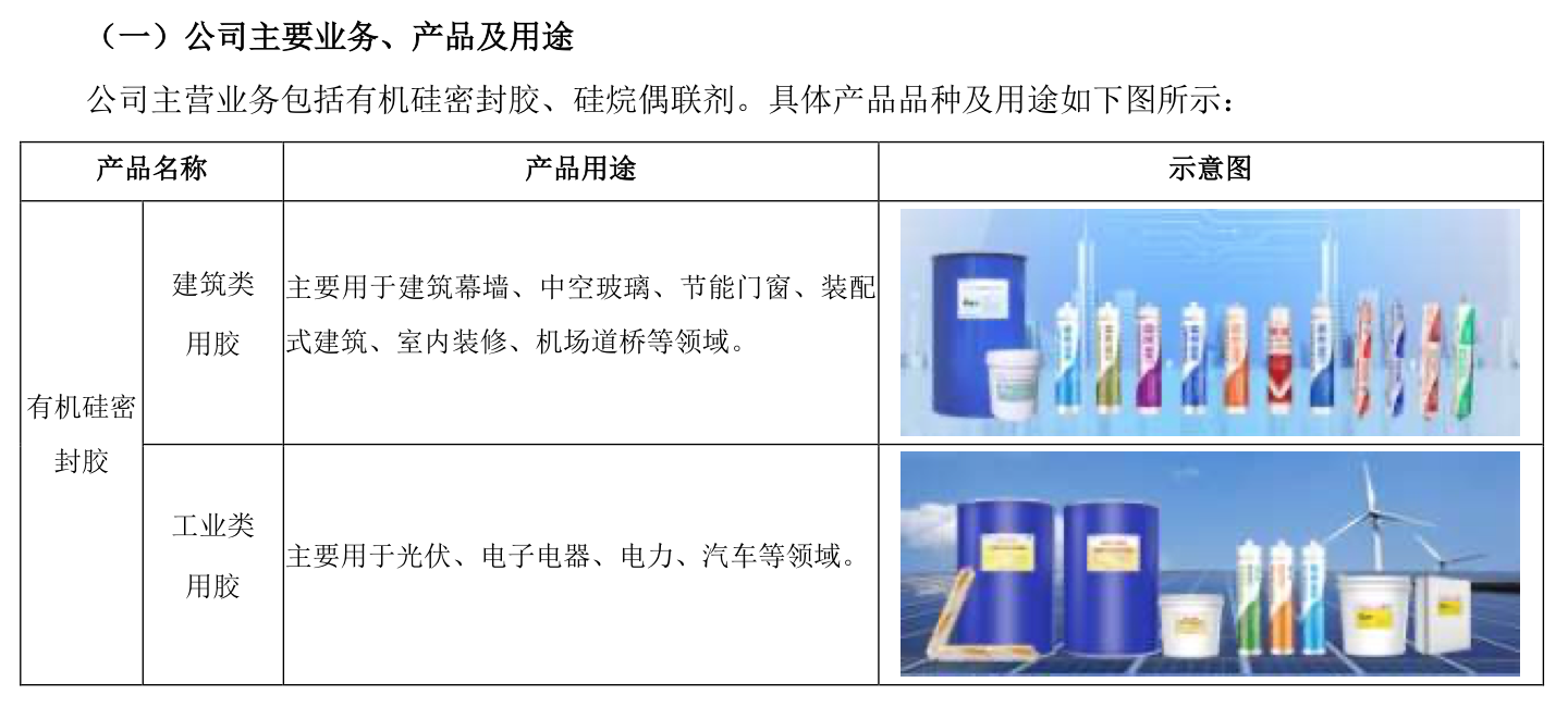 硅寶科技主要從事有機(jī)硅密封膠等新材料的研發(fā)、生產(chǎn)及銷售,所屬行業(yè)為有機(jī)硅行業(yè),主要產(chǎn)品包括有機(jī)硅密封膠、硅烷偶聯(lián)劑。有機(jī)硅密封膠又分為建筑類用膠和工業(yè)類用膠,建筑行業(yè)目前仍是有機(jī)硅密封膠最大的應(yīng)用領(lǐng)域。建筑類用膠主要用于建筑幕墻、中空玻璃、節(jié)能門窗、裝配式建筑、室內(nèi)裝修、機(jī)場道橋等領(lǐng)域。在2021年,硅寶科技建筑類用膠產(chǎn)品實(shí)現(xiàn)銷售收入17.71億元,同比增長63.04%。工業(yè)類用膠主要用于光伏、電子電器、電力、汽車等領(lǐng)域。硅寶科技在2021年工業(yè)類用膠實(shí)現(xiàn)銷售收入5.02億元,同樣大幅增長了66.47%。硅烷偶聯(lián)劑則主要應(yīng)用于密封膠、光伏EVA膜、人造石英石、玻璃纖維、鑄造樹脂、涂料油墨、改性塑料、改性粉體、金屬表面處理劑等領(lǐng)域。在該領(lǐng)域,硅寶科技在報(bào)告期內(nèi)實(shí)現(xiàn)2.69億元的收入,同比增長116.76%。