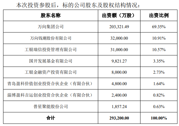 萬(wàn)向錢潮表示,參與投資萬(wàn)向一二三,意在對(duì)能源科技的核心和新能源汽車的核心部件——電池企業(yè)進(jìn)行布局。