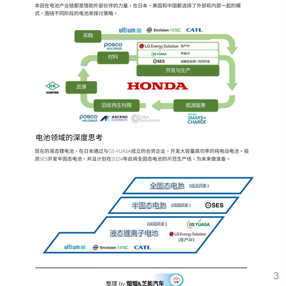在電池采購(gòu)和開發(fā)方面,本田將與多家電池企業(yè)合作,加強(qiáng)液態(tài)鋰離子電池的外部合作,采購(gòu)稀有金屬等電池資源,并計(jì)劃在2020年代后半期推出半固態(tài)和全固態(tài)電池等新一代電池。