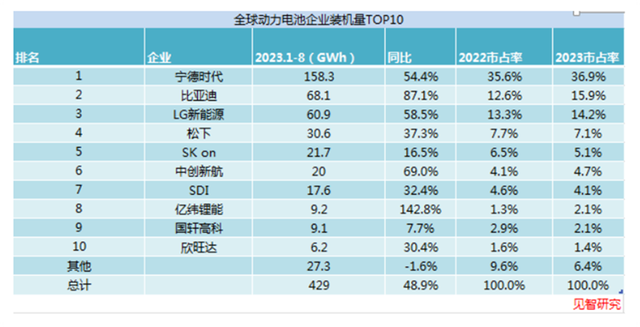 國軒高科在全球的動力電池市場中的表現(xiàn)也頗為不佳,今年1-8月的動力電池裝機量增速僅僅只有7.7%,是動力電池裝機量前十榜單中唯一一家個位數(shù)增長的廠商,市場份額也下滑了0.8個百分點到2.1%,是國內(nèi)動力電池廠商中下滑幅度最大的企業(yè)。