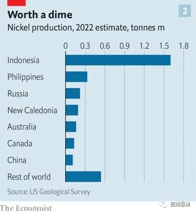 2022年全球礦鎳產(chǎn)量預(yù)估,來(lái)源:美國(guó)地質(zhì)調(diào)查局