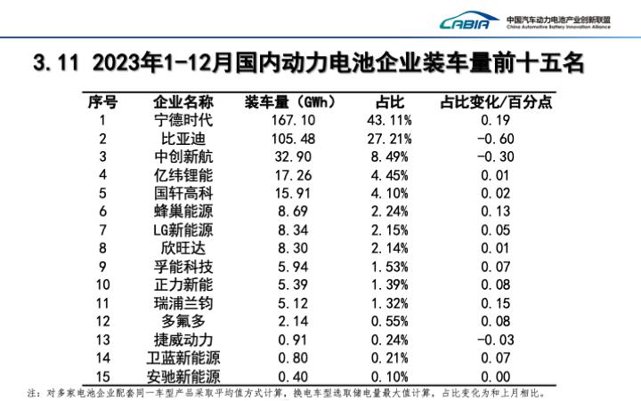 比亞迪以 111.4GWh 的裝機量緊隨其后,占全球市場分額的 15.8%。