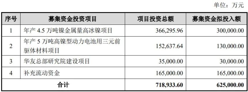 5月22日晚,華友鈷業(yè)發(fā)布公告稱,公司擬定增募資62.5億元,用于年產(chǎn)4.5萬噸鎳金屬量高冰鎳項目、年產(chǎn)5萬噸高鎳型動力電池用三元前驅(qū)體材料項目、華友總部研究院建設項目和補充流動資金。
