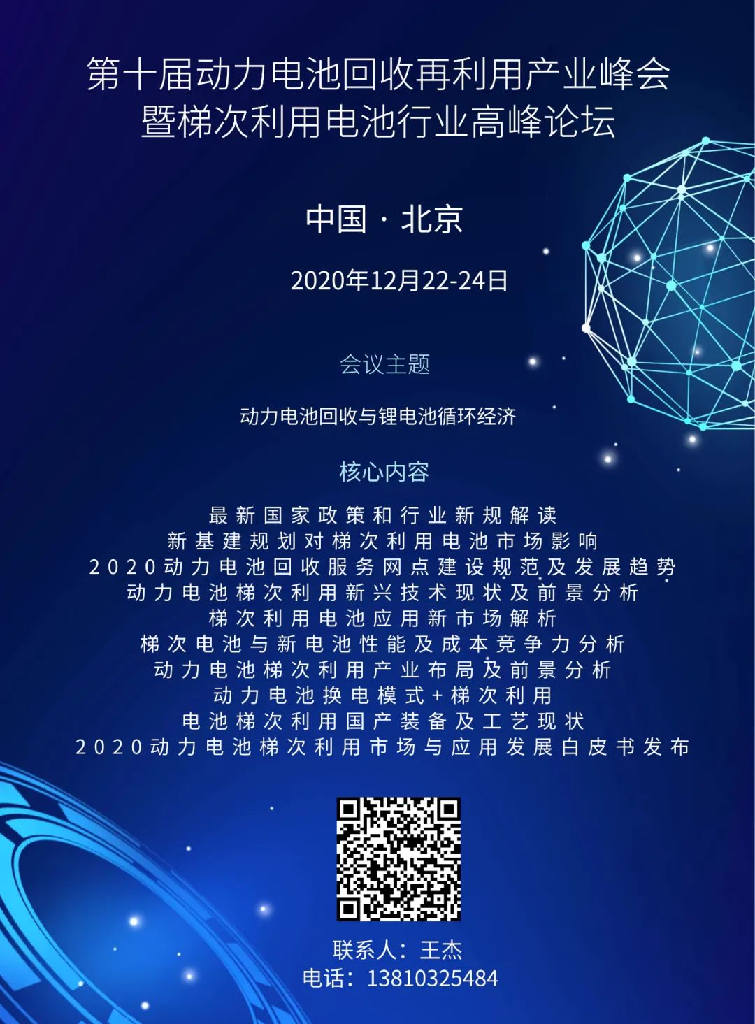 為了促進電池回收行業(yè)發(fā)展,引導廢舊動力電池回收網(wǎng)絡體系建立,探討新基建規(guī)劃帶來的新市場機遇,提高動力電池全生命周期價值,探索新型商業(yè)模式及盈利點。由電池聯(lián)盟、中國綠色供應鏈聯(lián)盟電池專委會、中國電子節(jié)能技術(shù)協(xié)會電池專委會聯(lián)合舉辦的“第十屆動力電池回收再利用產(chǎn)業(yè)峰會暨梯次利用電池市場發(fā)展論壇”,即將在北京召開。